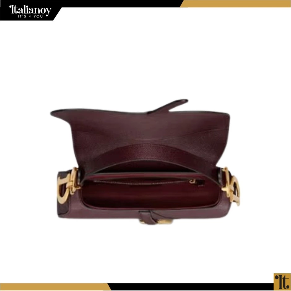 MINI SADDLE BAG WITH STRAP Amaranth Grained Calfskin