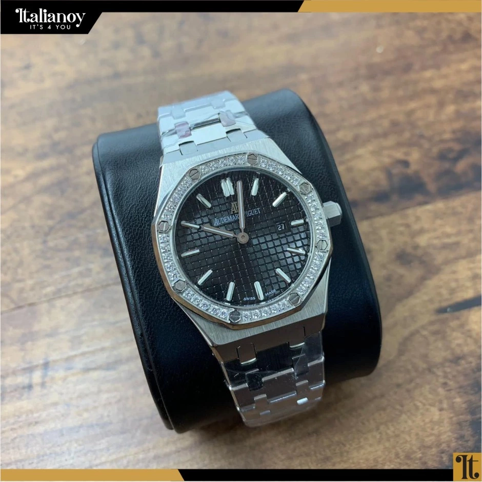 DIAL:Silver-toned dial with “Grande Tapisserie” pattern, white gold applied hour-markers and Royal Oak hands with luminescent coating