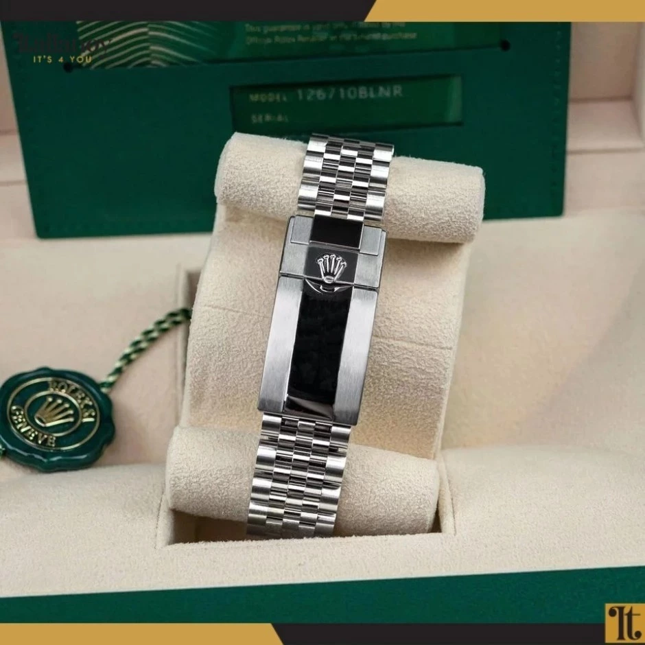 Bezel: Bidirectional rotatable 24-hour graduated bezel with two-color blue and black Cerachrom insert in ceramic, engraved numerals and graduations