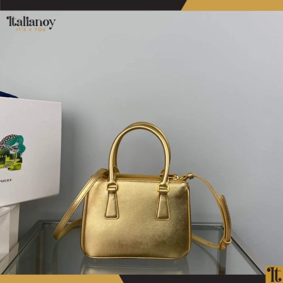 Features: Detachable shoulder strap, exclusive leather name tag with metal logo, leather handle