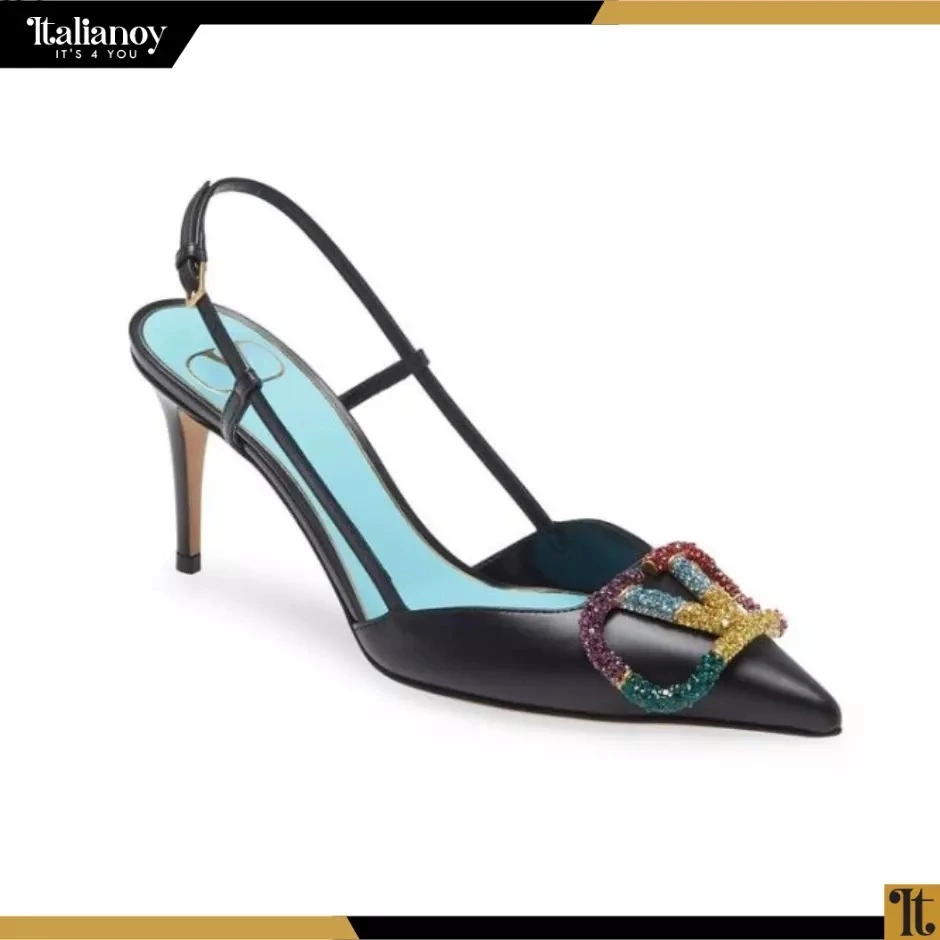 Product Name: Leather Multicolor VLogo Signature Slingback Sandals